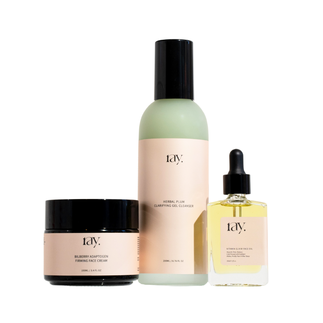 Refresh, balance, and nourish your skin with The Starter Kit. This carefully curated trio includes our Herbal Plum Clarifying Gel Cleanser, Vitamin Elixir Face Oil, and Bilberry Adaptogen Firming Face Cream — a complete ritual designed to cleanse, hydrate, and support healthy, radiant skin.